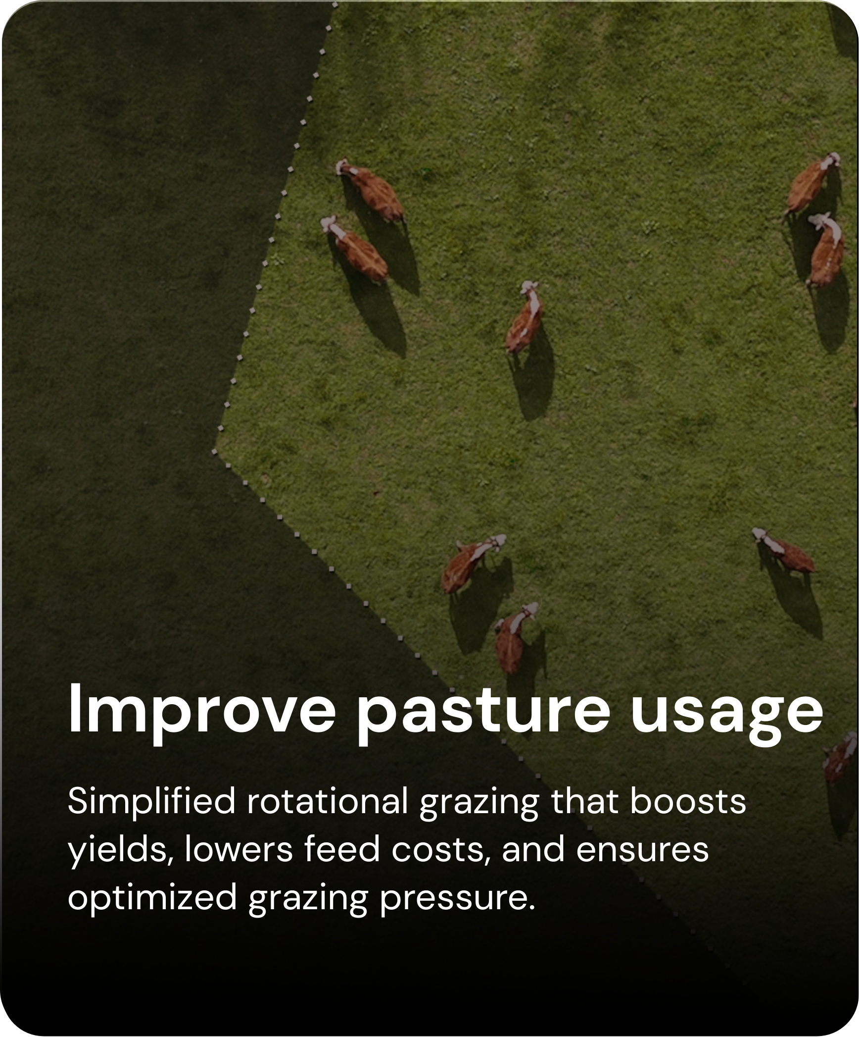 Draw as many fences as you like in the app and move them with just a tap. Monil lets you use every corner of your pasture, even rough and hard-to-reach terrain you couldn’t normally fence. Better land use means better grazing and healthier finances.