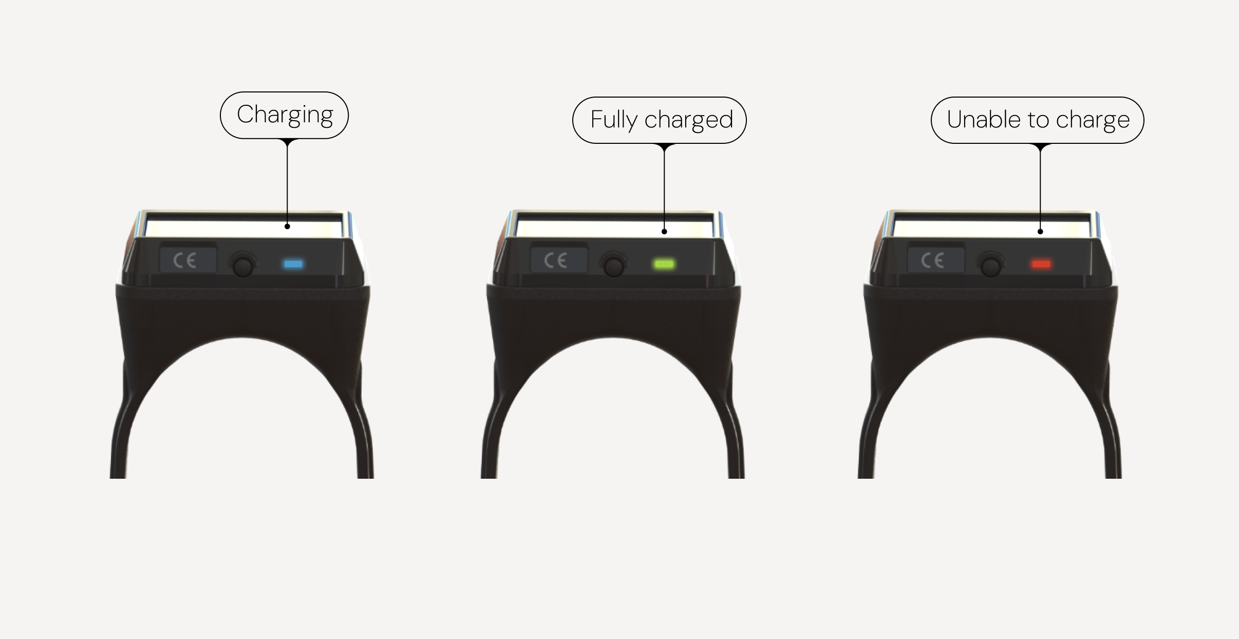 The light on the collar flashes blue when the collar is charging and turns steady green when charging is complete. If the collar lights up red, it means the collar is not charging even though there is voltage from the charger. If this happens, remove the charger from the charging station and try again. Contact customer support if the issue persists.