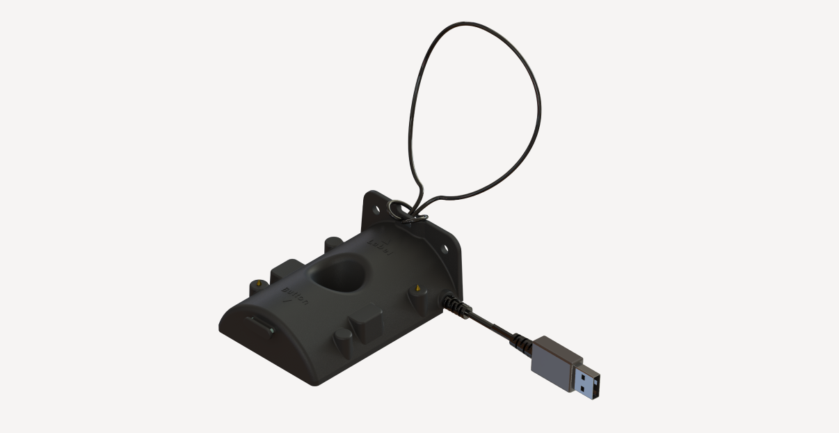 Charging stations are included in the delivery. The charging station can be mounted on the wall and comes with a 1.2-meter USB-A cable.