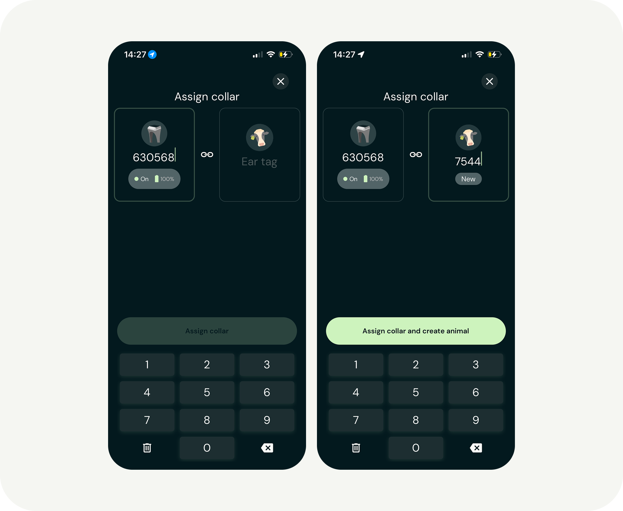 Under Animals in the menu, you’ll find a button called “Assign collar” in the top right corner. Tapping it will open a new screen.