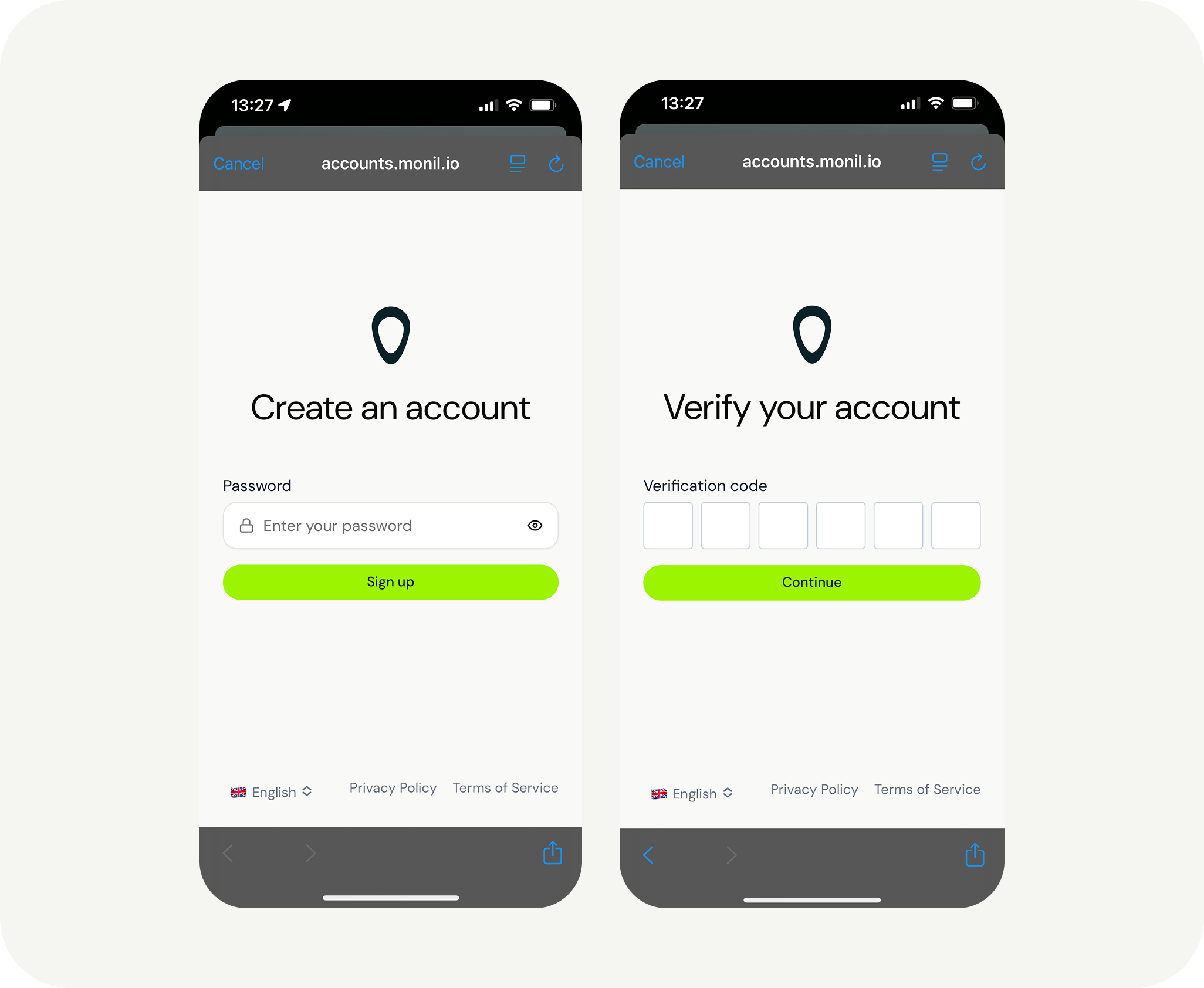 Creating user and organization in the Monil app